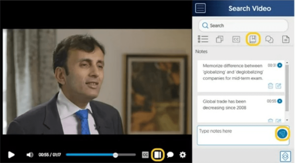 Simulate a more natural flow by allowing users to take notes when playing a video